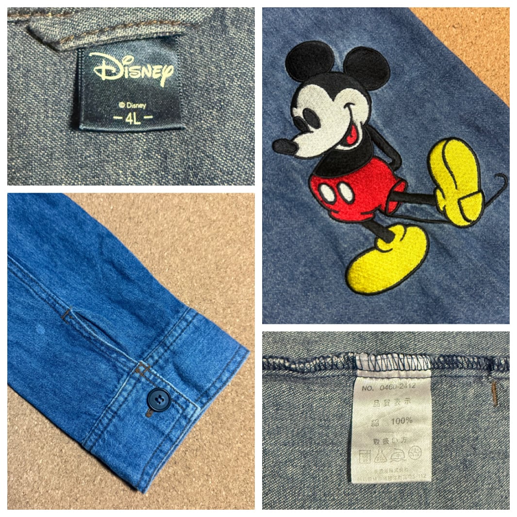 disney ディズニー デニム シャツ ジャケット ジップアップ フロントジップ ロゴ刺繍 ミッキーマウス Mickey Mouse キャラクター