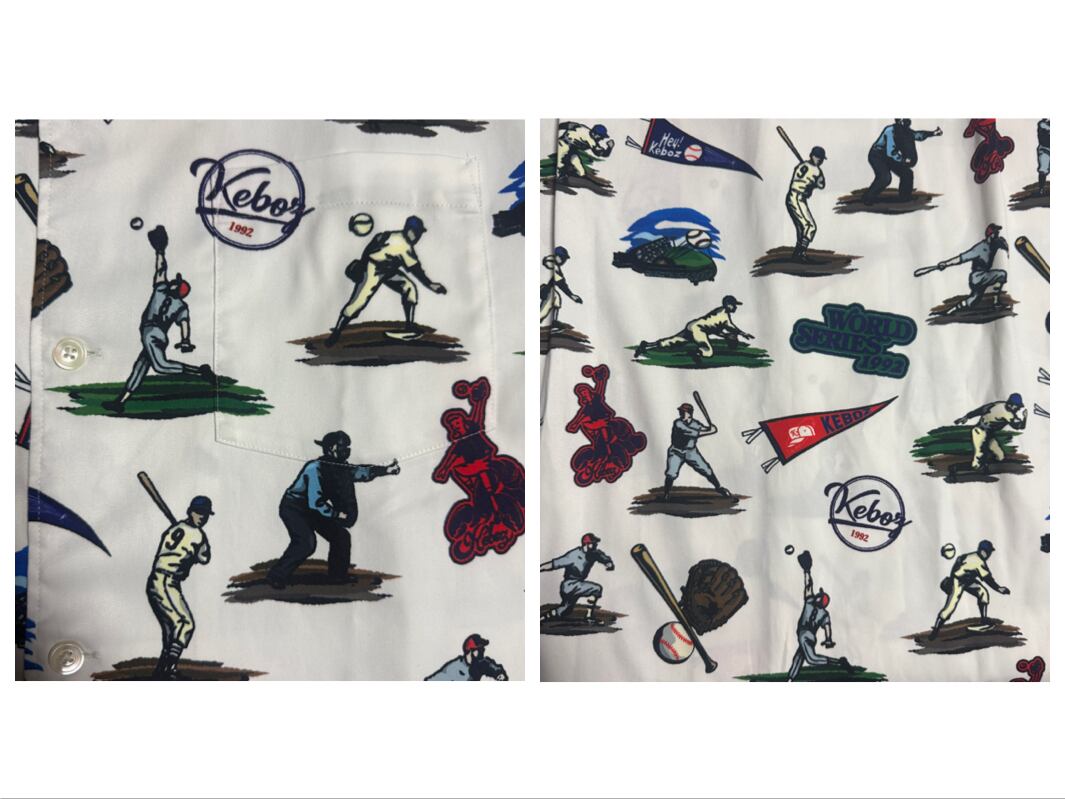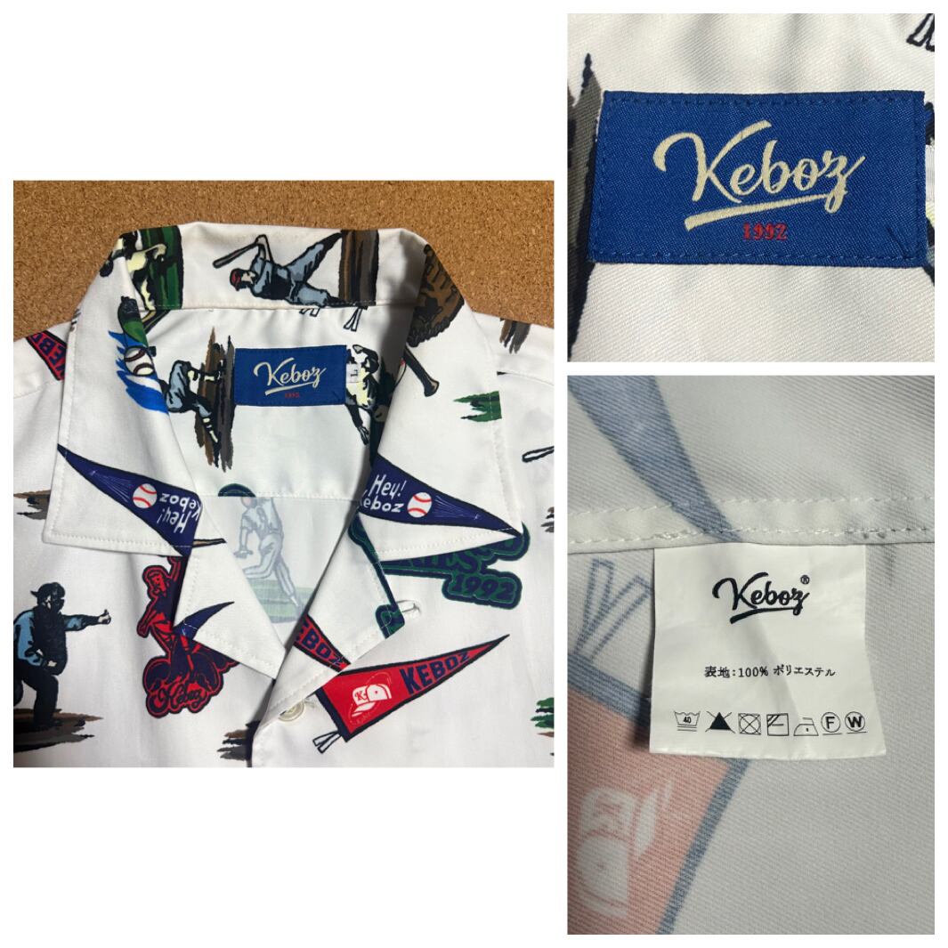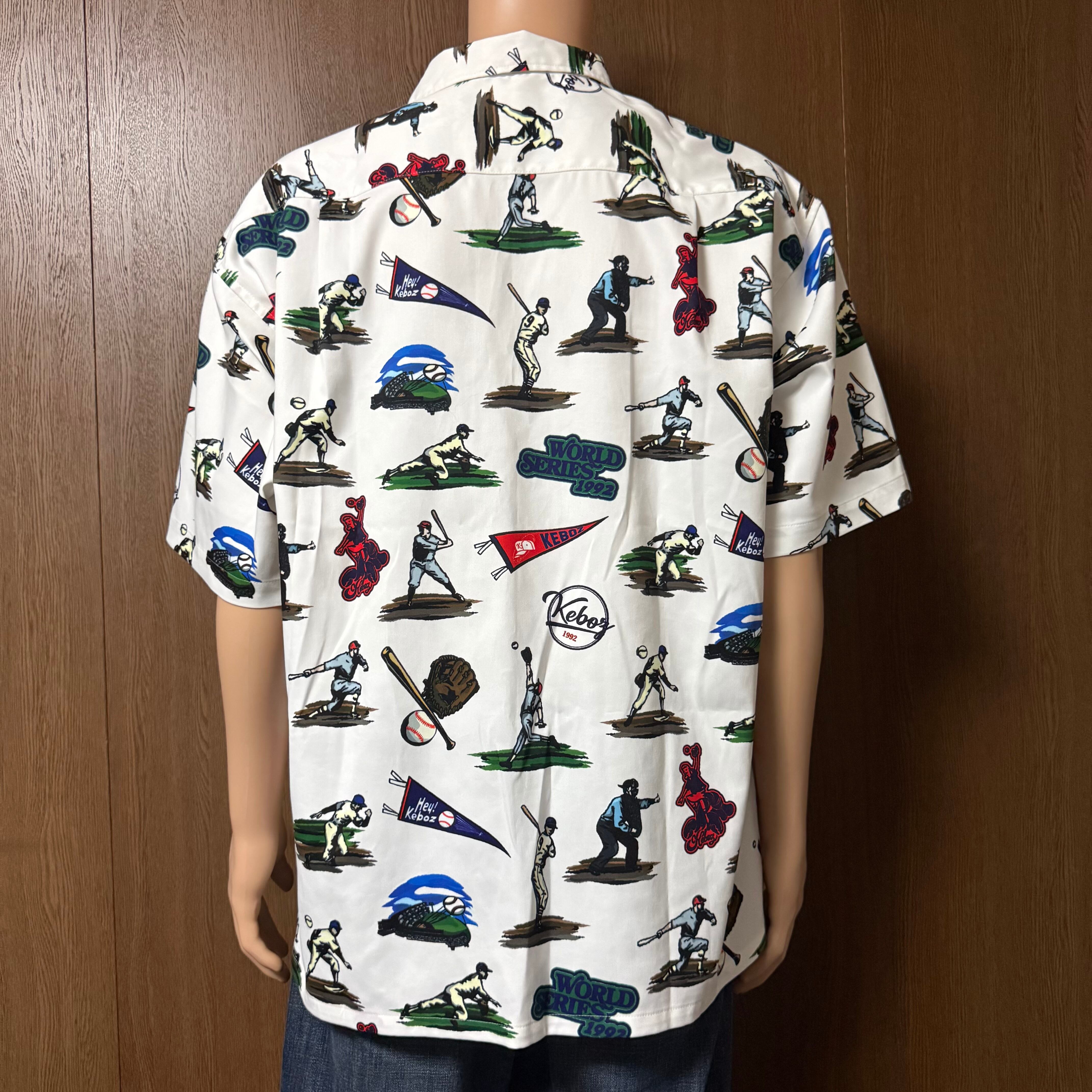 KEBOZ ケボズ 総柄 ベースボール イラスト ロゴ 半袖 開襟 オープンカラー ストリート