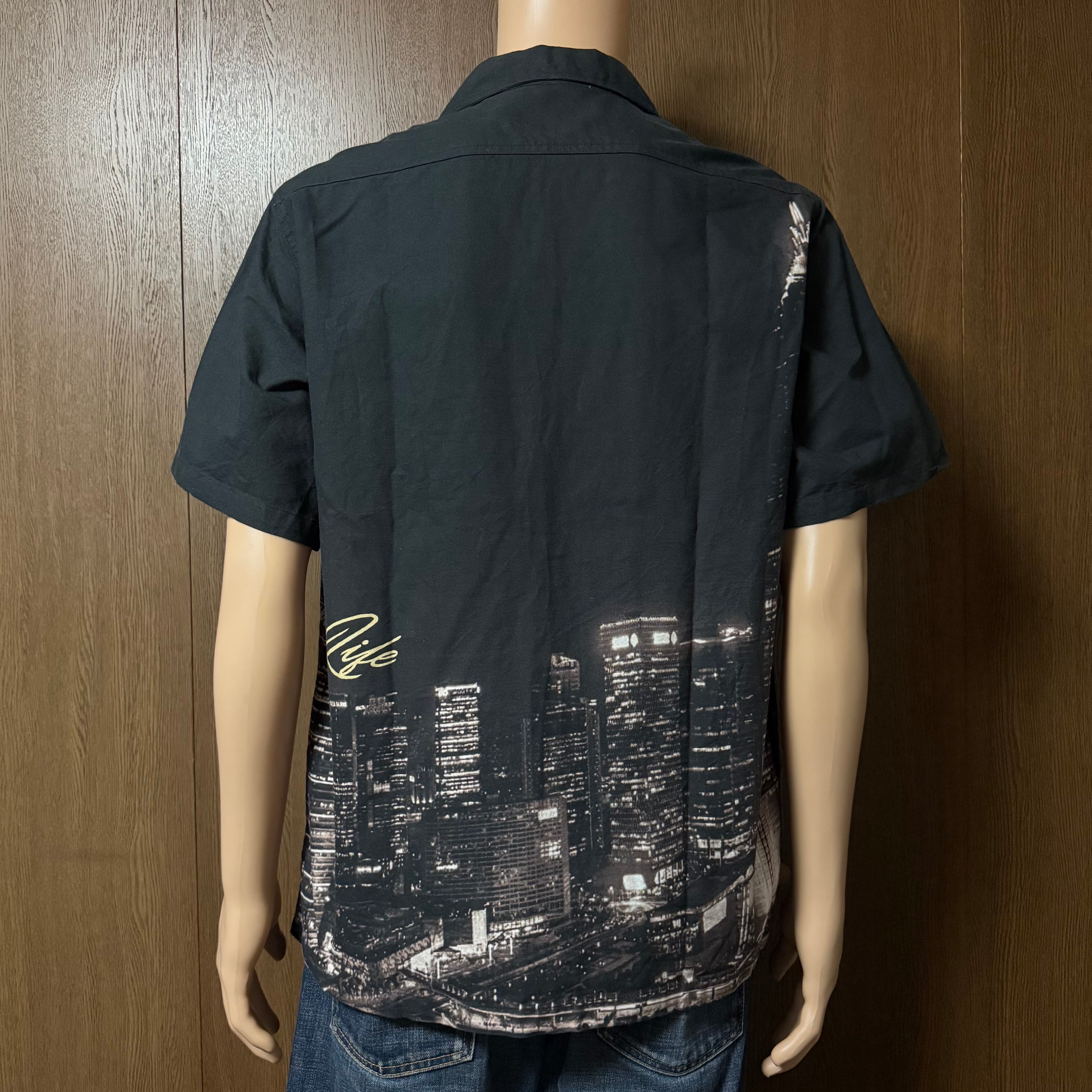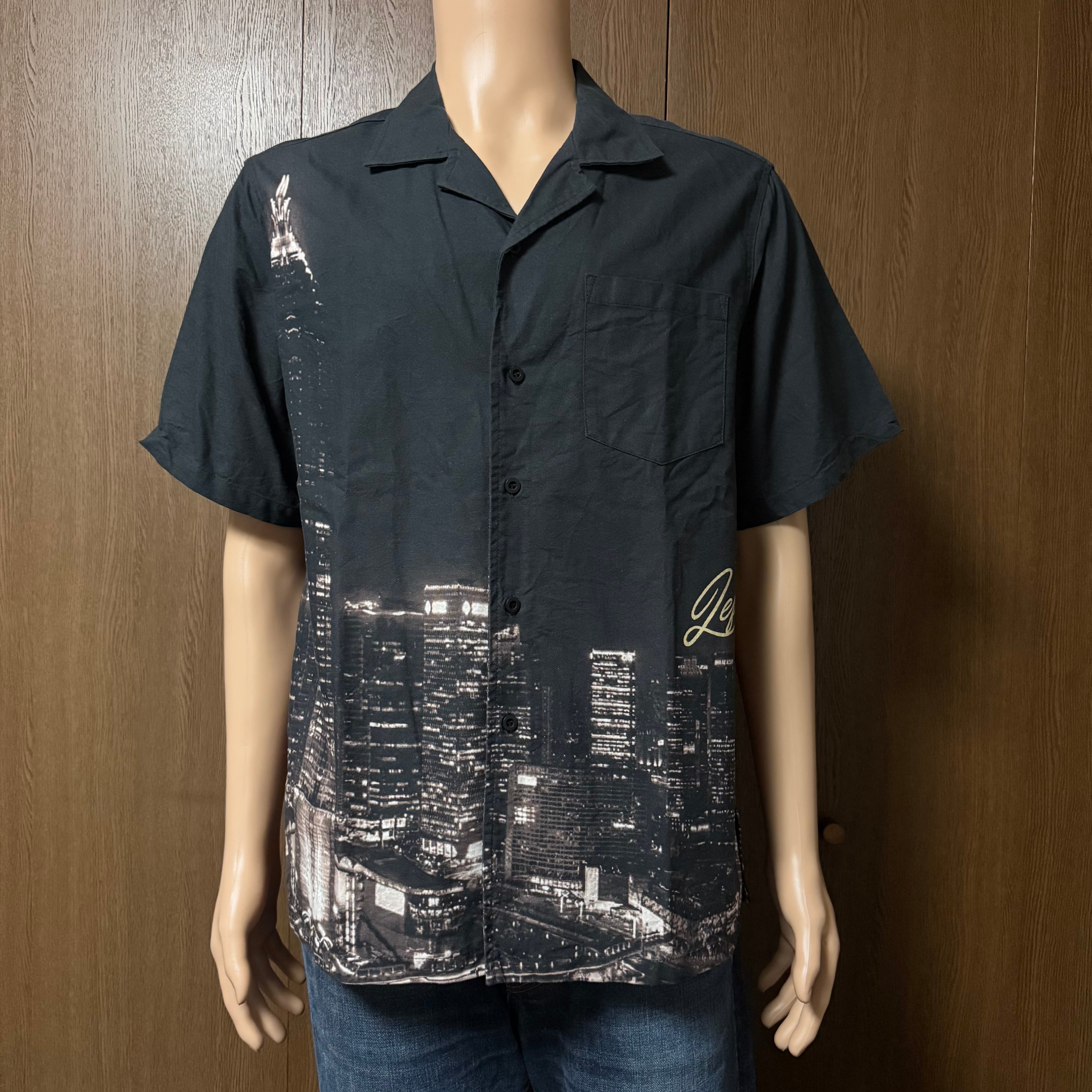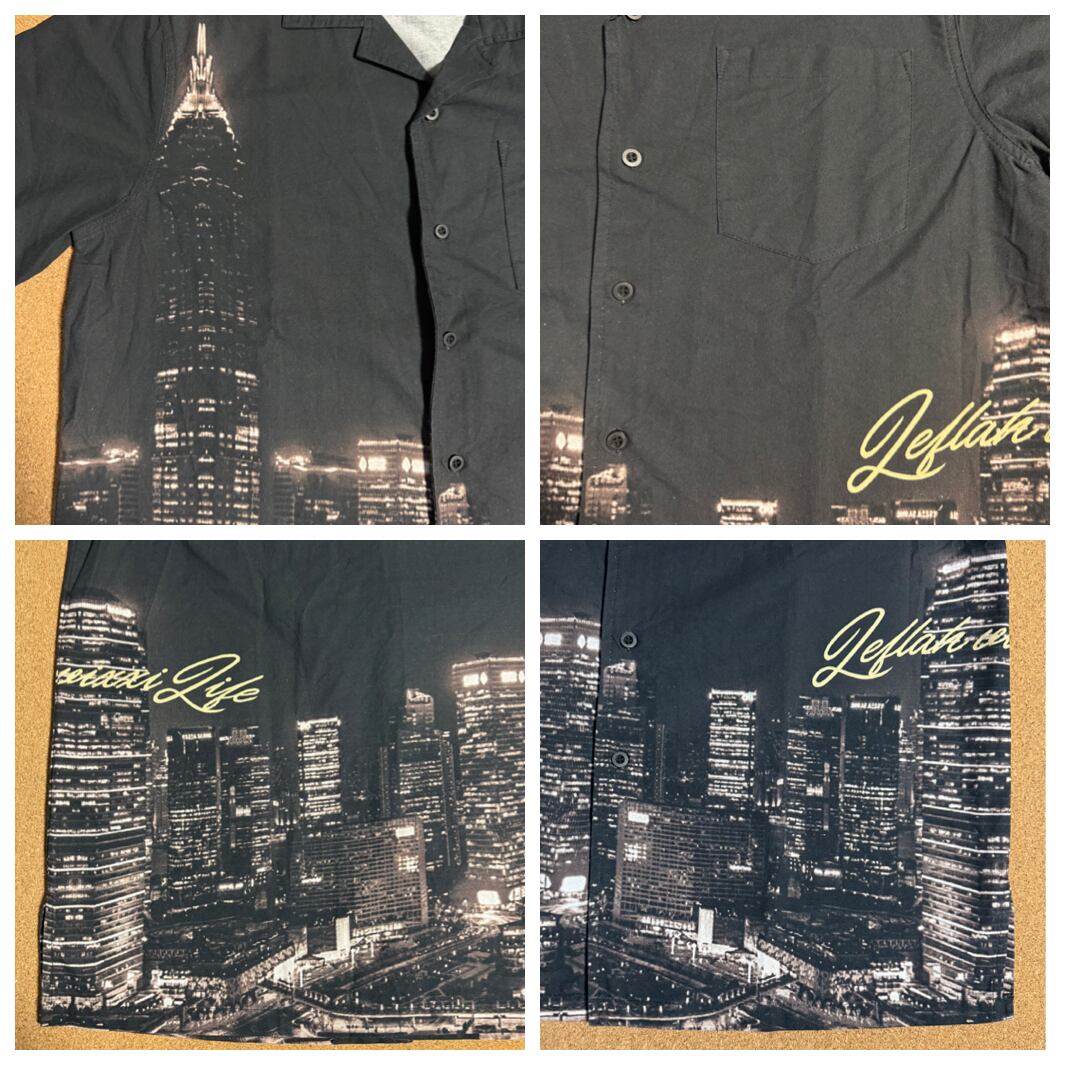 LEFLAH レフラー 開襟シャツ オープンカラーシャツ 半袖 ネオンシティ 夜景 ロゴ サイドスリット ストリート