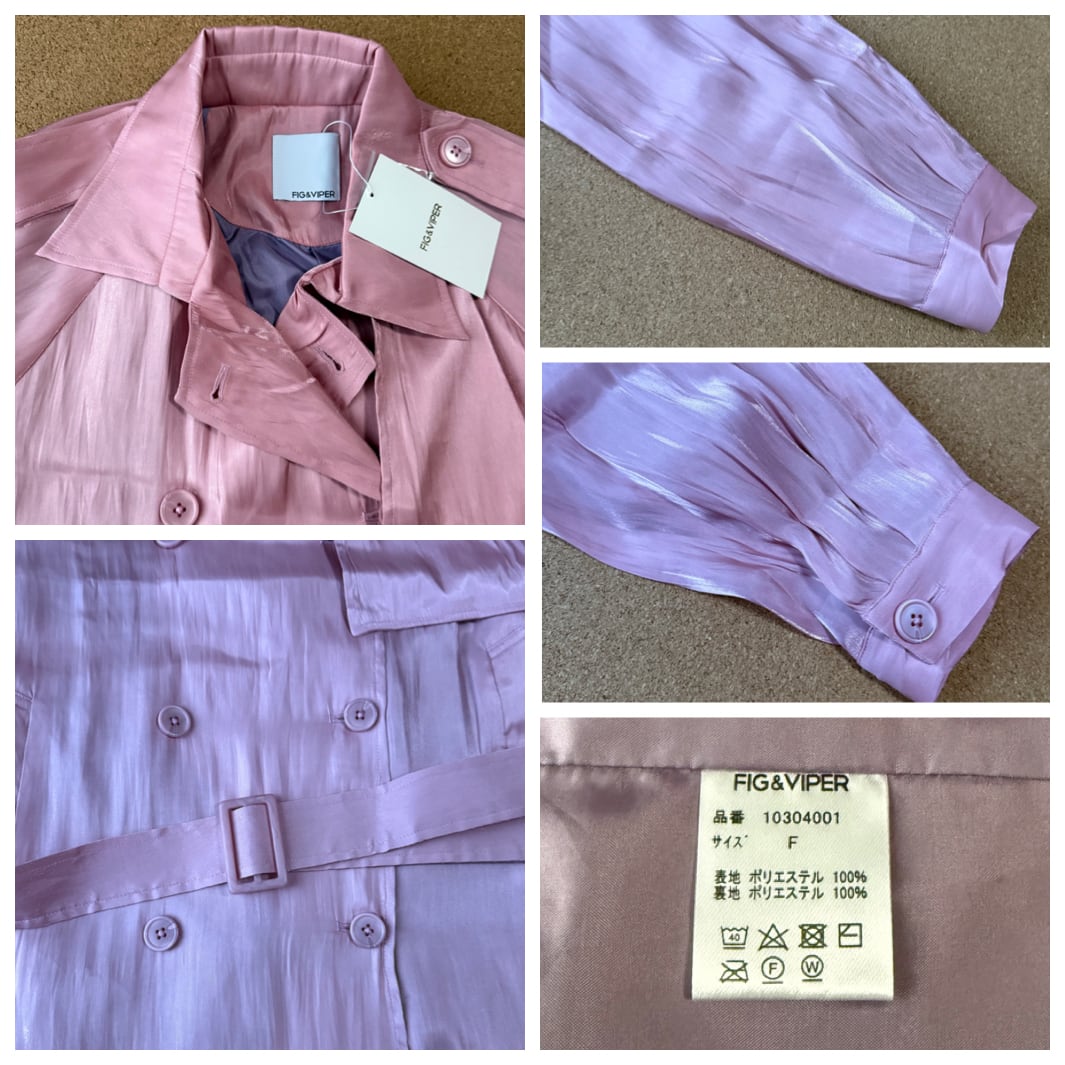 FIG & VIPER fig&viper トレンチコート ポリエステルサテン ベルト ダブル ガンフラップ エポレット ストームシールド プリーツ タグ付き未使用品 シワあり