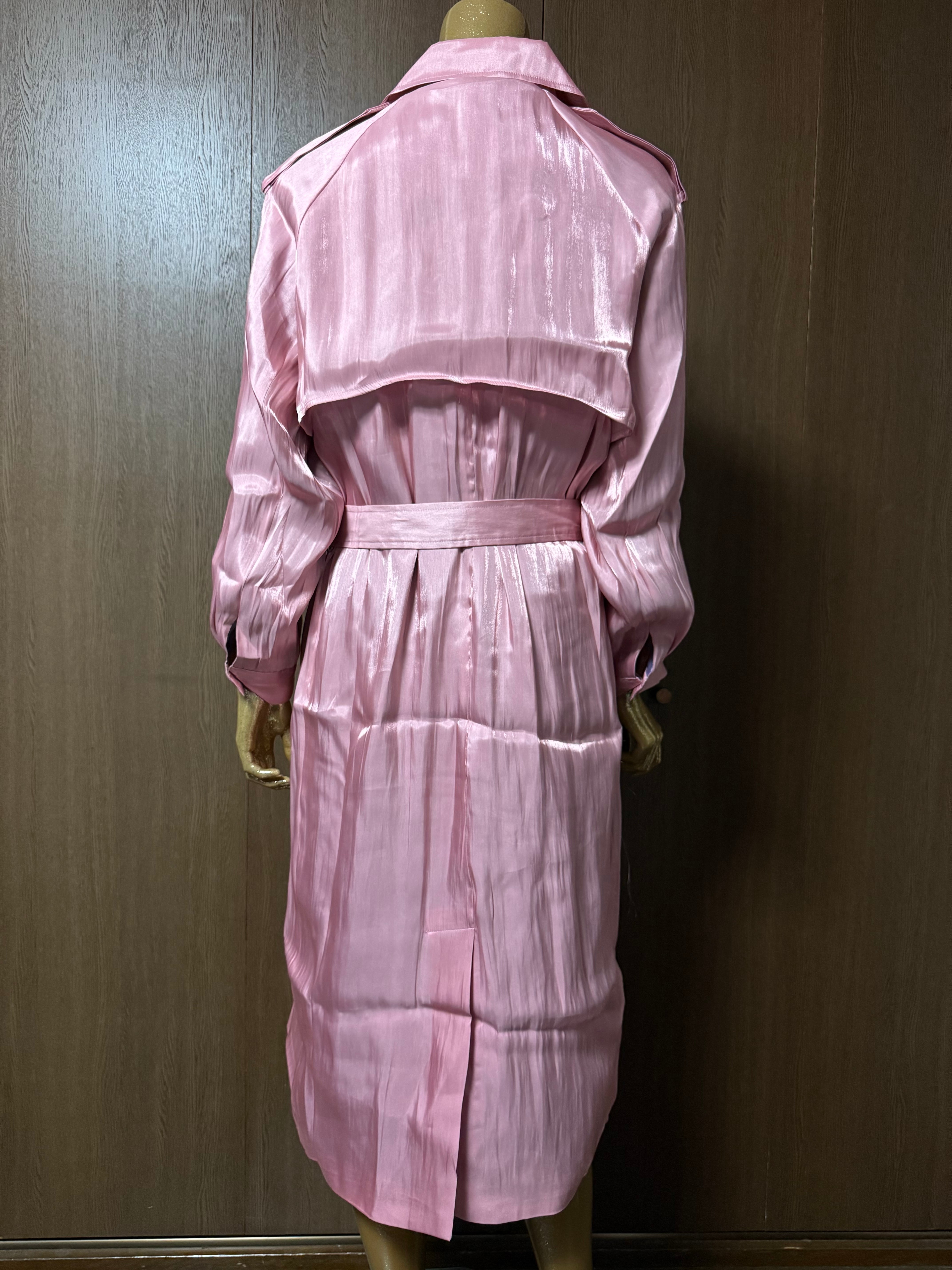 FIG & VIPER ポリエステルサテン ダブルトレンチコート 薄手