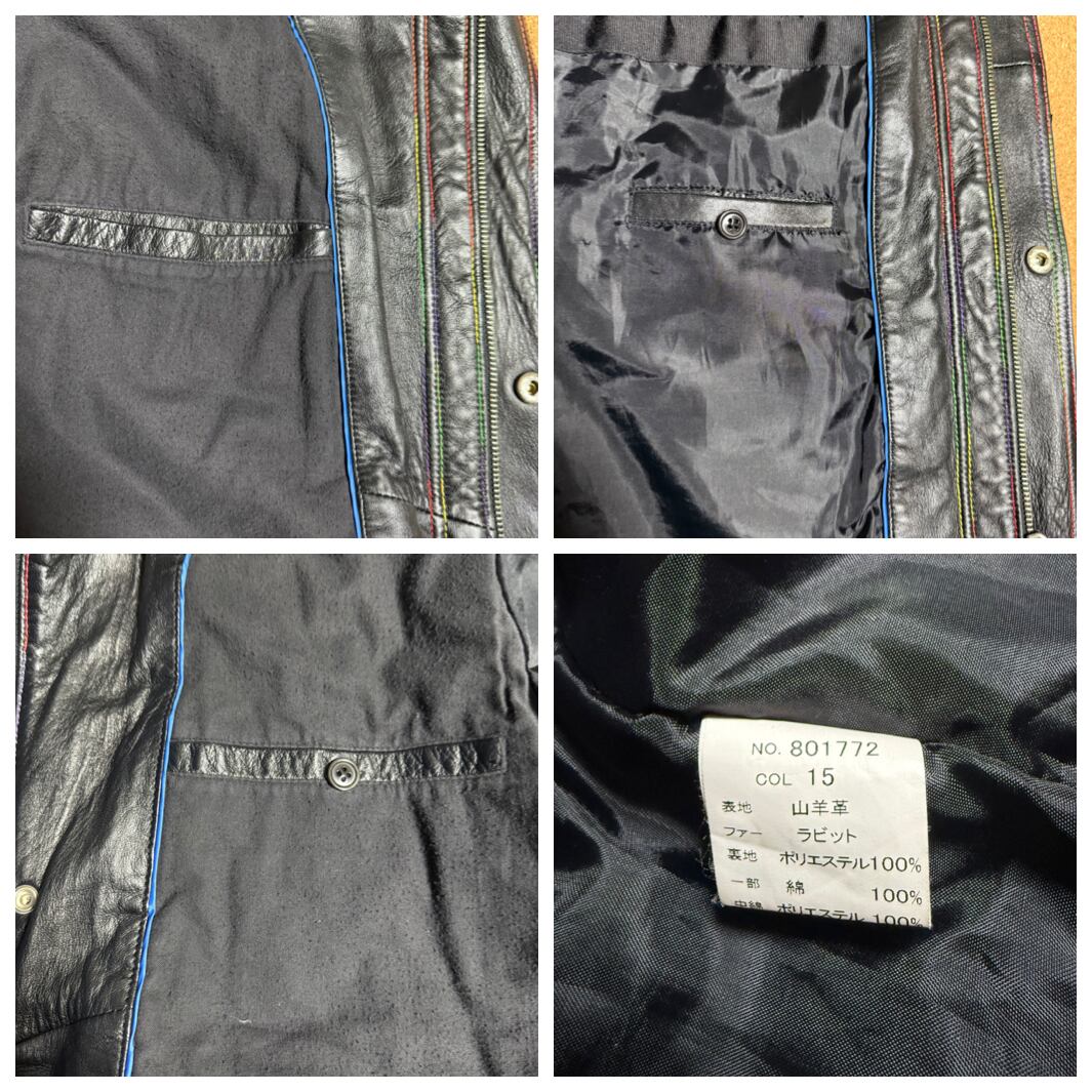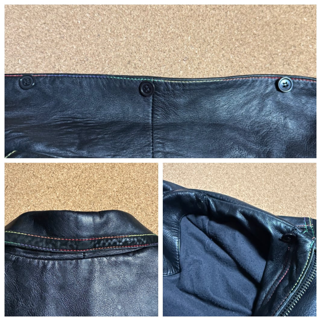 Monterey & Carmel モントレー&カーメル チェック柄 レザージャケット 本革 山羊革 ヤギ革 中綿 中わた ブルゾン ステッチワーク マルチカラー レザー切替 ベルト 内ポケット 襟のファー欠品