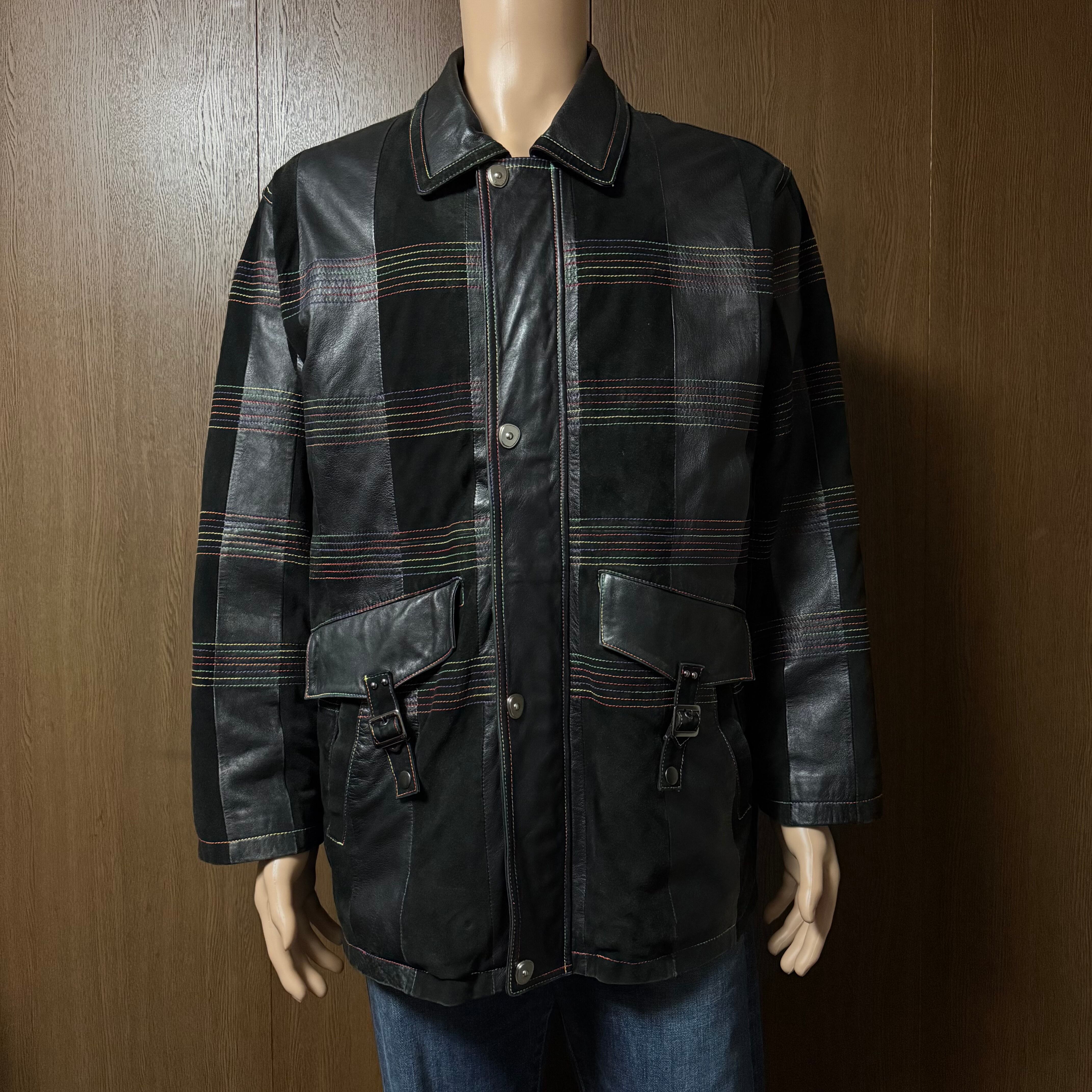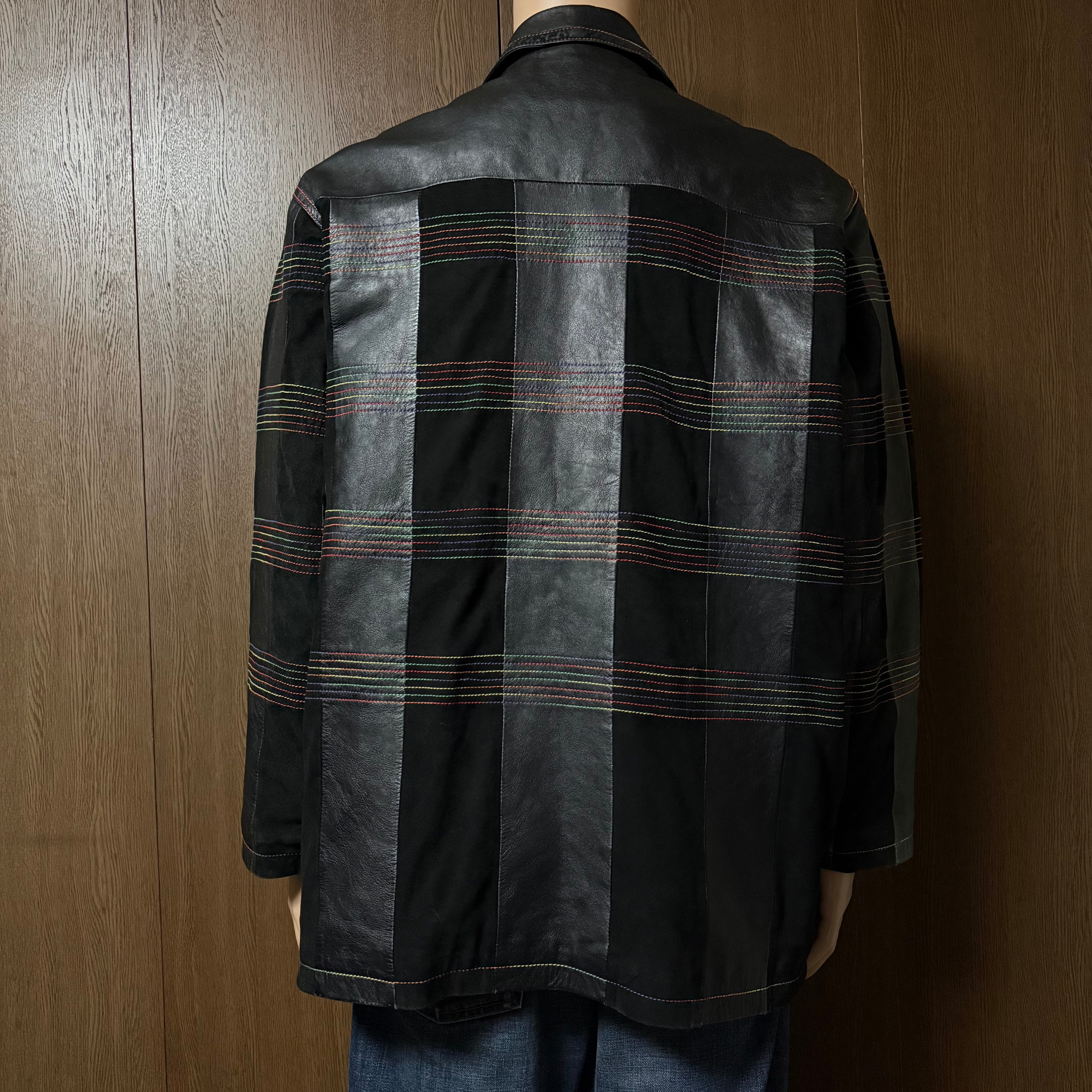 【古着】Monterey & Carmel ステッチワーク使いチェック柄 レザージャケット