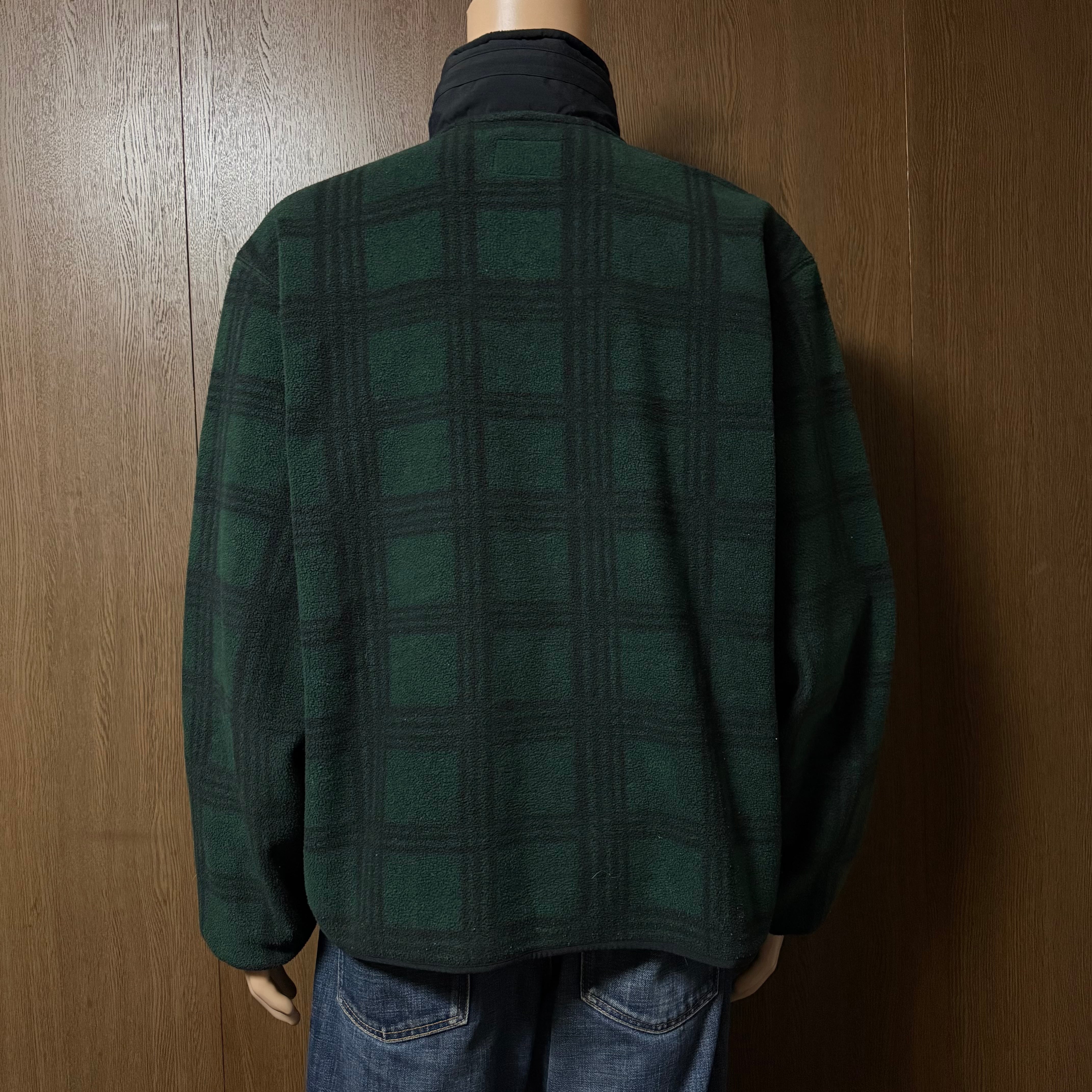 Champion チャンピオン チェック ハーフジップ フリース プルオーバー ワンポイント ロゴ 収納式フード 着用感あり ストリート