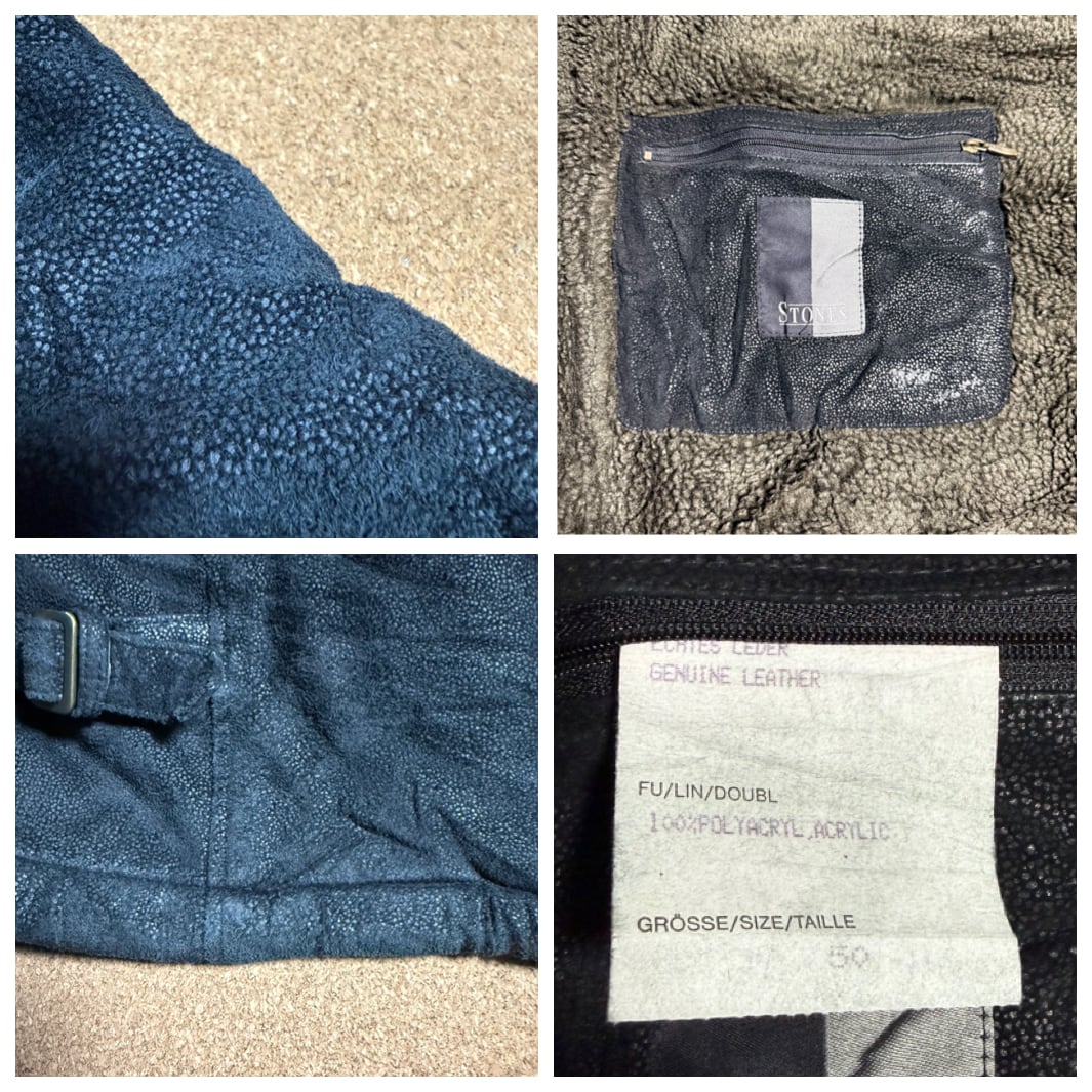 STONES レザー リアルレザー 本革 ブルゾン ジャケット ボア襟 裏ボア ベルト ジップアップ シワあり 内ポケット ダメージあり