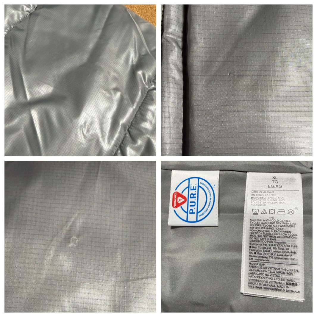 GAP ギャップ 中綿 中わた リサイクル パファー ジャケット ロゴ フロントジップ ドローコード リブ袖 シミあり リップストップ生地 ストリート