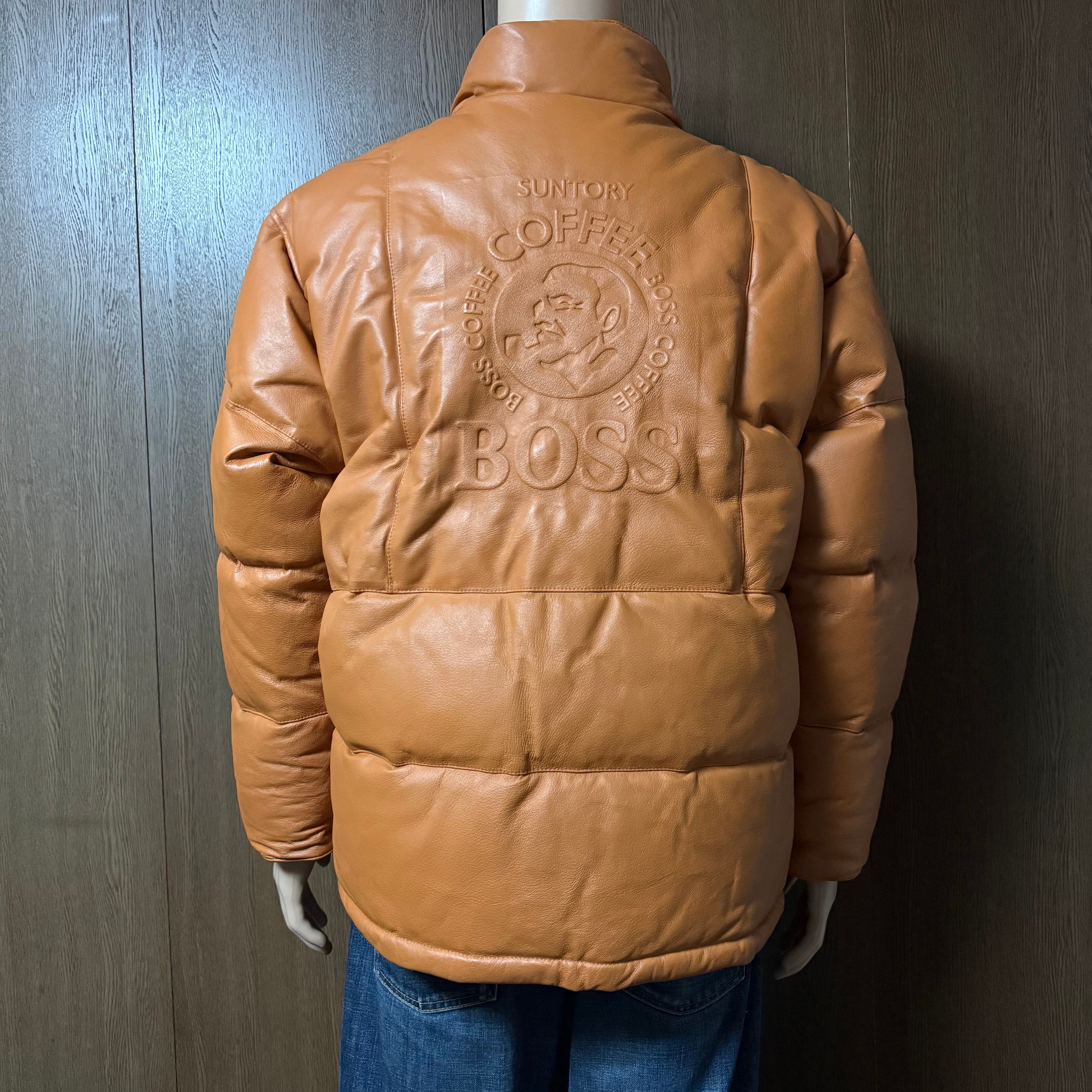 SUNTORY BOSS COFFEE レザーダウンジャケット 背面エンボスロゴ