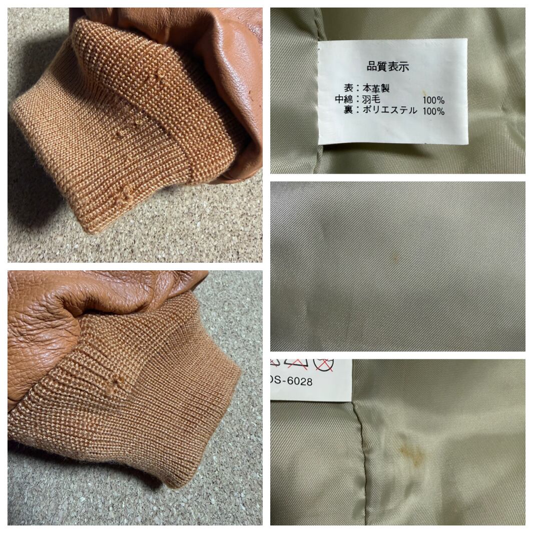 ※両袖口リブニット部分に虫食い穴が複数あり、裏地品質表記タグ付近に汚れあり、表地革部分にも細かい傷や汚れありですが、十分魅力的な状態です。