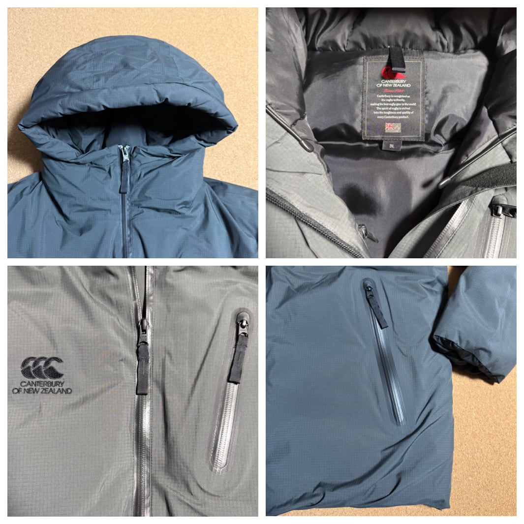CANTERBURY カンタベリー フーデット ダウンジャケット フード ロゴ刺繍 止水ジップ リップストップ ドローコード 内ポケット スポーツMIX