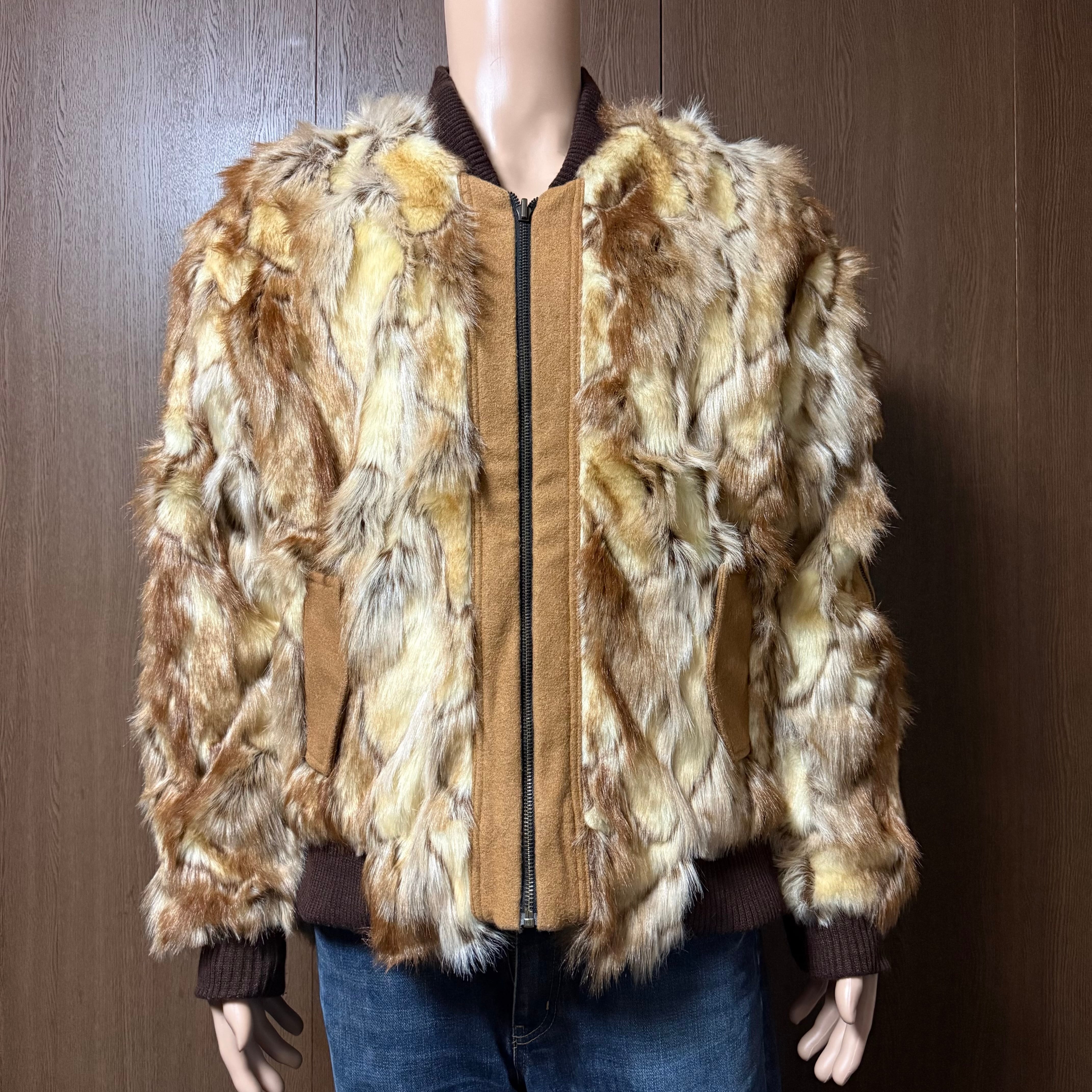 Royal Respect ロイヤルリスペクト ファー ジャケット まだら模様 シガーポケット リブ キルティング裏地 リバーシブルも可能