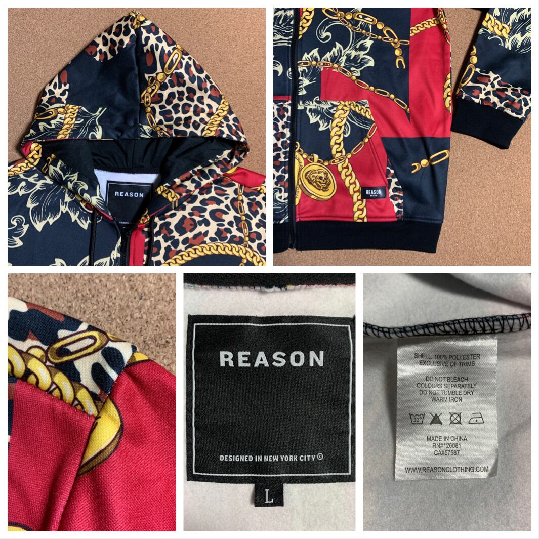 REASON リーズン 総柄 ジップアップ パーカー フーディ スカーフ柄 豹柄 ヒョウ柄 レオパード カンガルーポケット ストリート