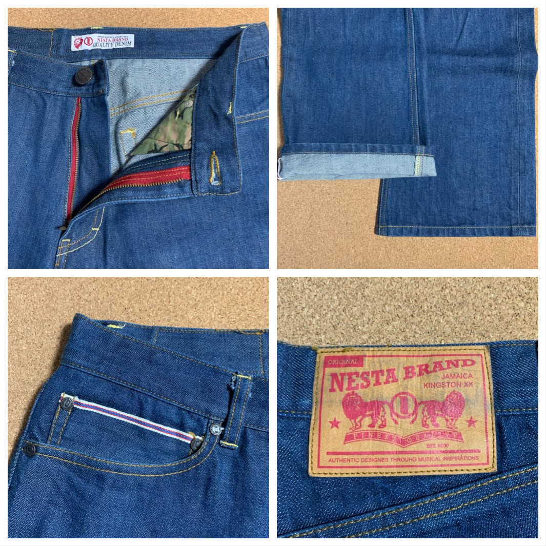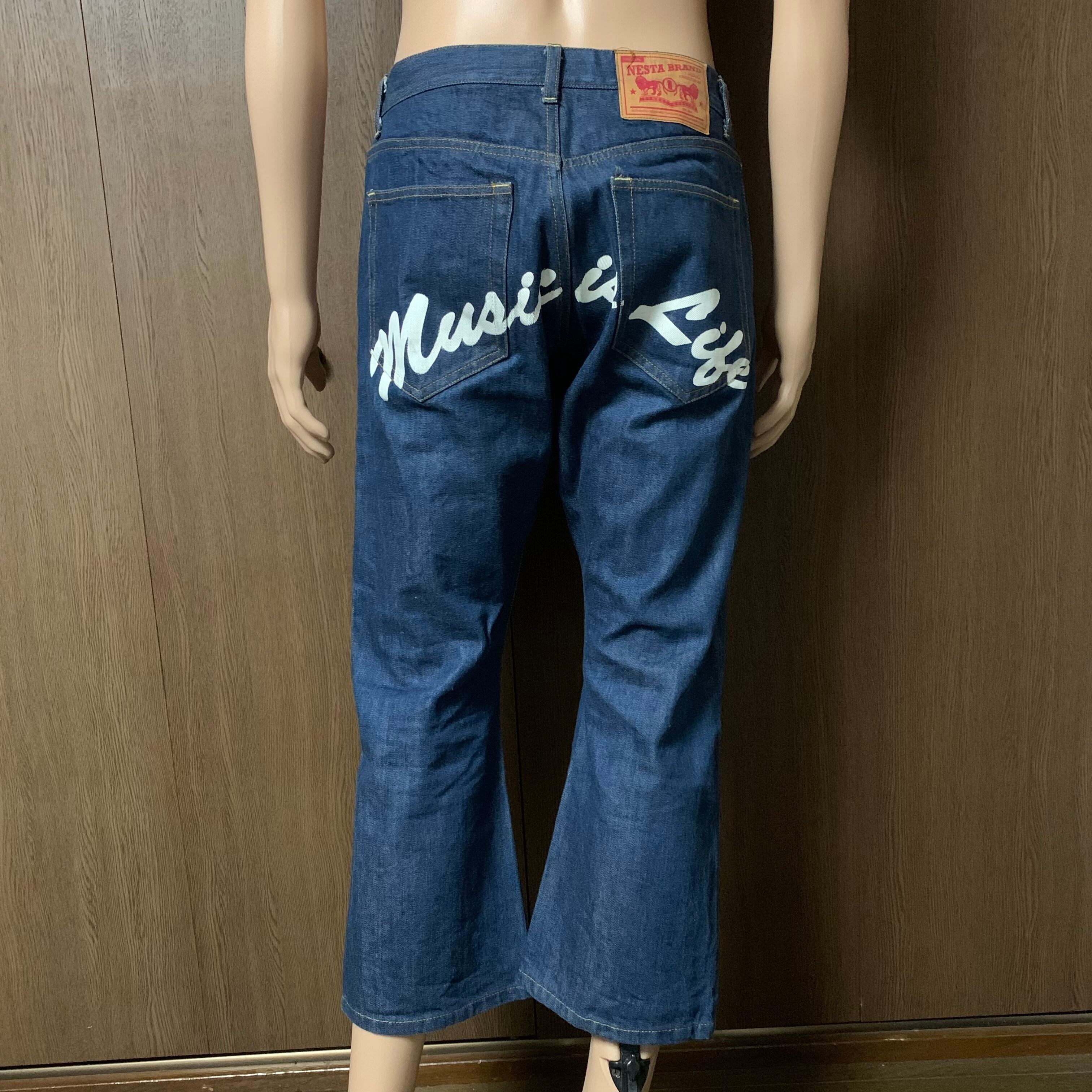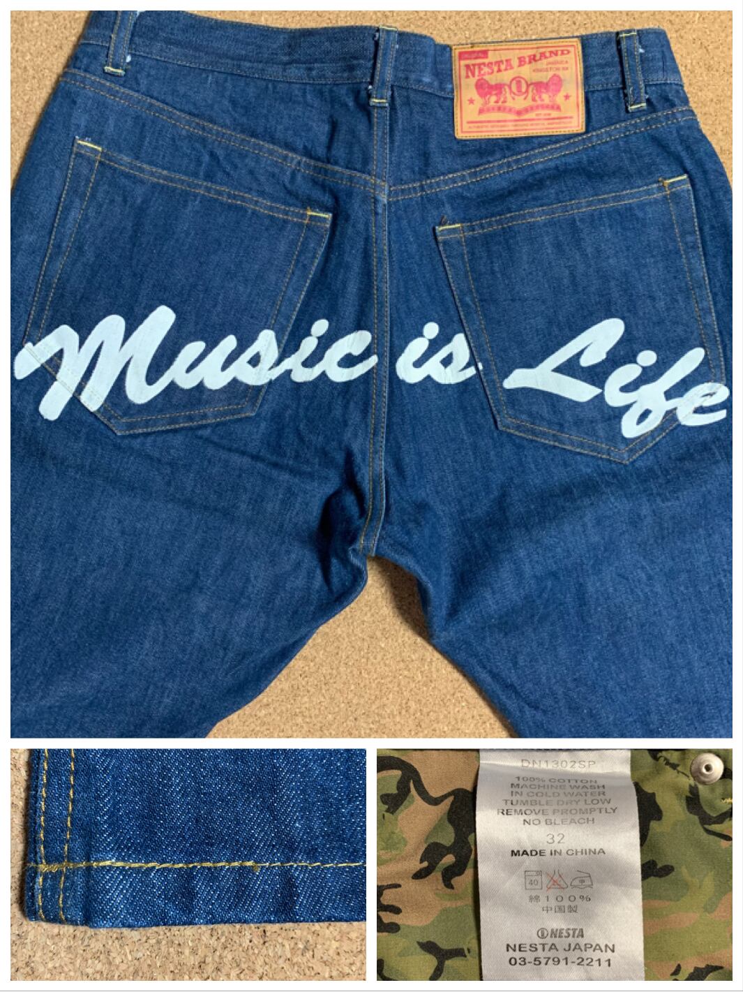 NESTA BRAND ネスタ ブランド デニムパンツ ジーンズ Gパン 背面プリント バックプリント music is life 革パッチ 迷彩柄裏地 カモフラージュ 裾上げ済み ストリート