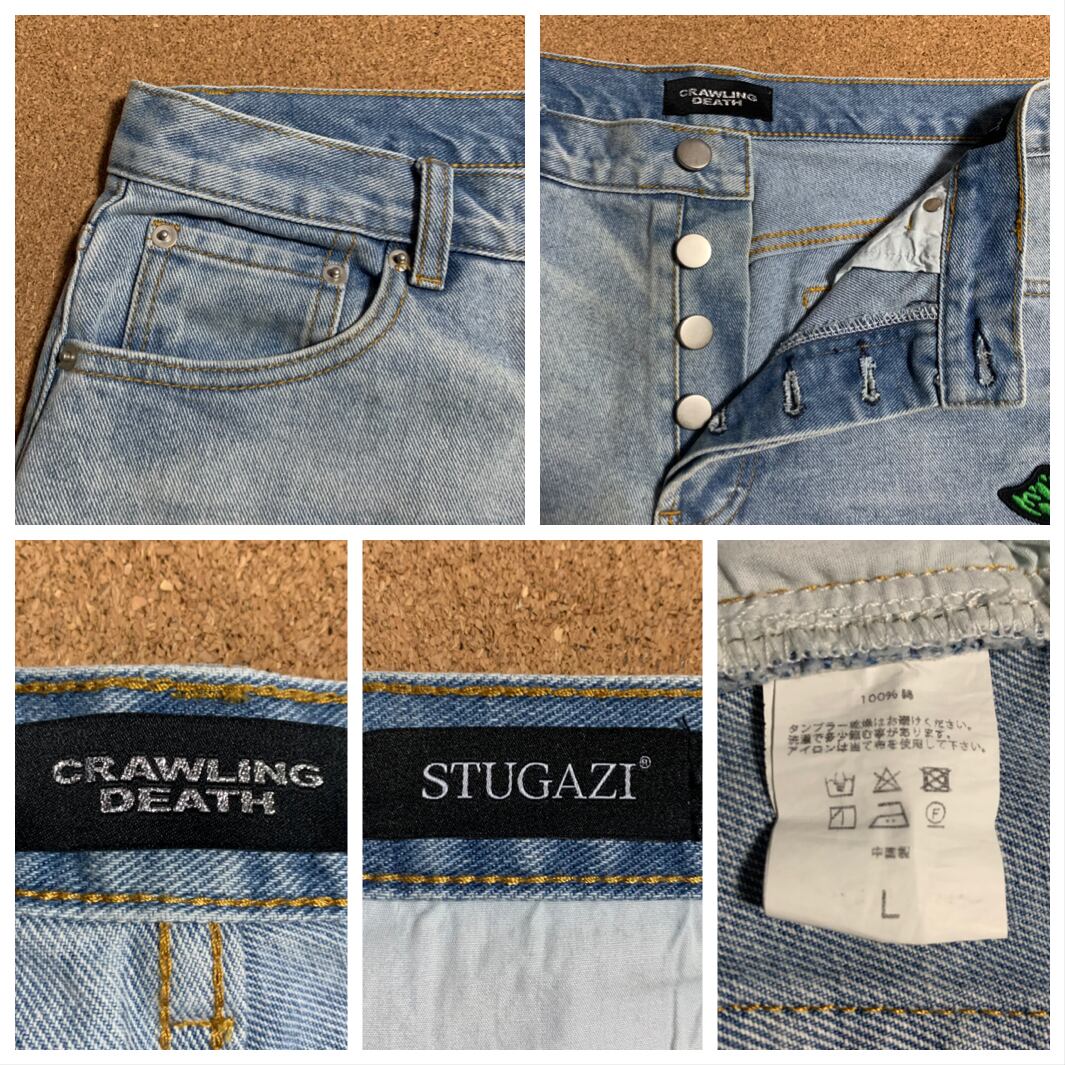 CRAWLING DEATH クローリングデス STUGAZI スガジ デニムパンツ ジーンズ Gパン バタフライ 蝶 刺繍 フラワー 花柄 ボタンフライ ストリート