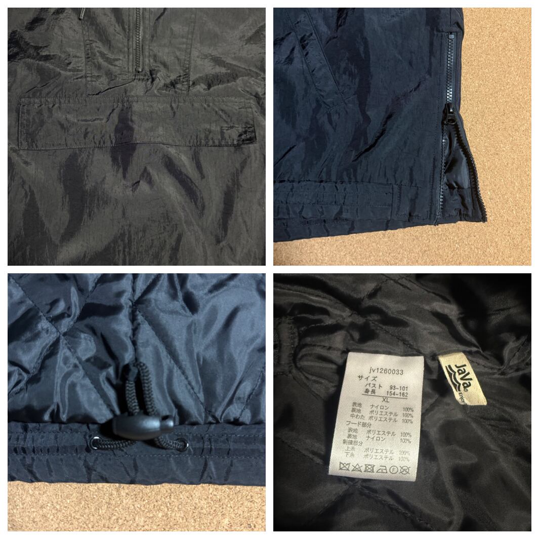 JaVa ロゴ刺繍 アノラックパーカー ボアフード 中綿 ナイロンジャケット ハーフジップ サイドジップ ドローコード タグ付き 未使用品